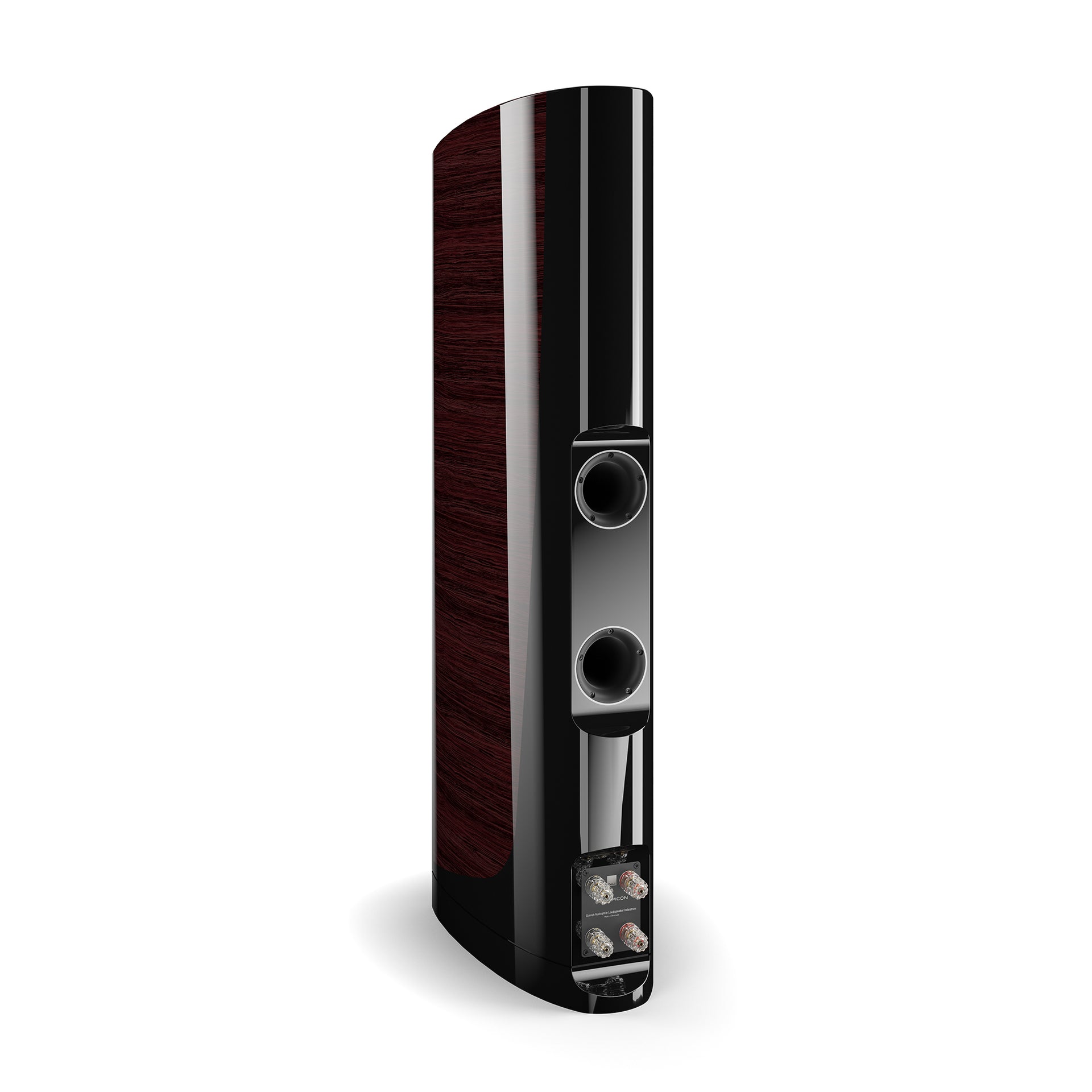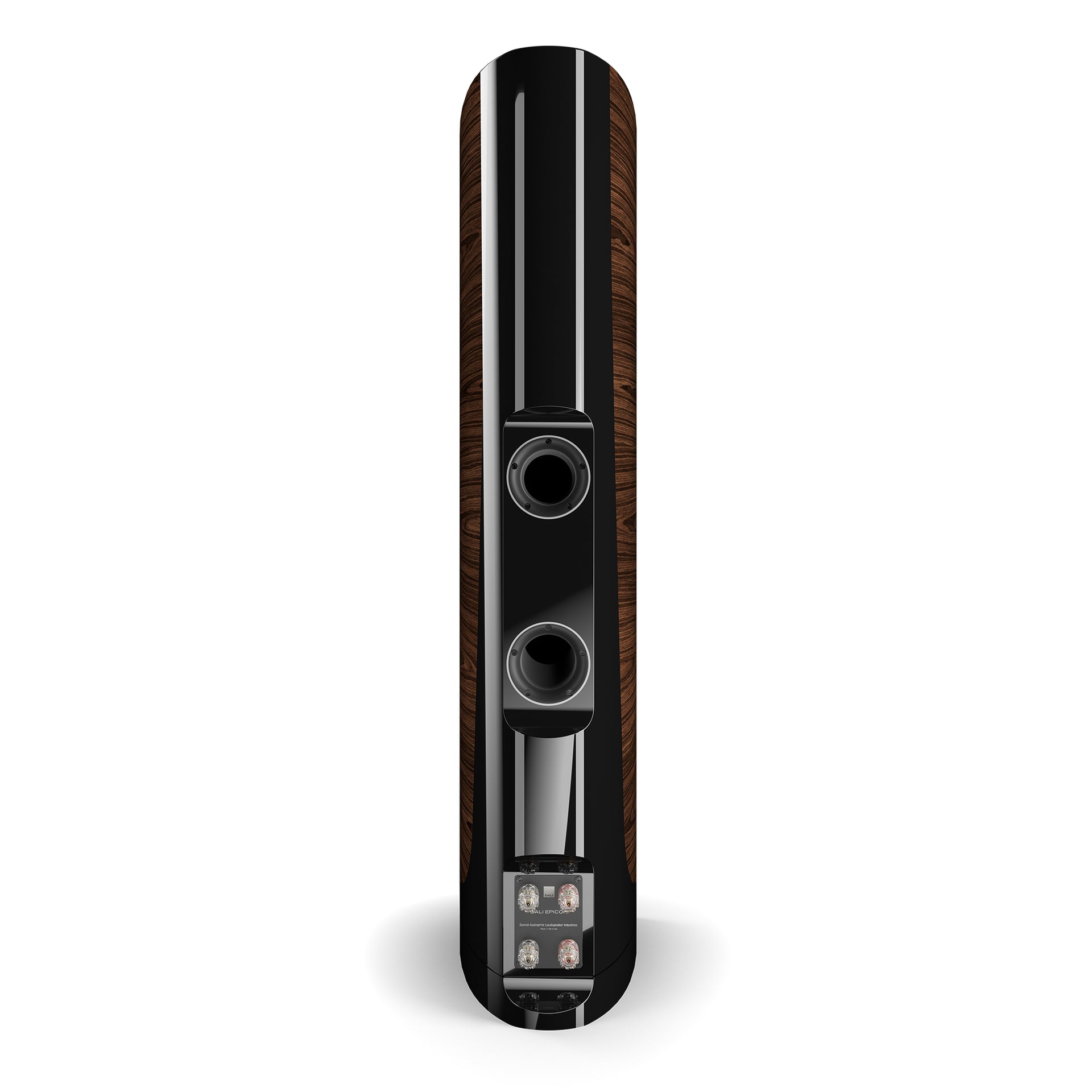 The EPICON 8 is a masterclass in elegant loudspeaker design, with curved lines and a real-wood veneer finished with 10 layers of lacquer, each hand polished to a deep gloss. But the cabinet is also functional. With no parallel surfaces, unwanted reflections are practically eliminated, while the rigid construction provides a solid platform and an acoustically tuned 'spring' for the drivers, which helps to eliminate resonant energy. Separate chambers inside the cabinet also allow each woofer to be individually tuned to perfection, and bass ports located directly behind the bass and midrange drivers minimise turbulence.