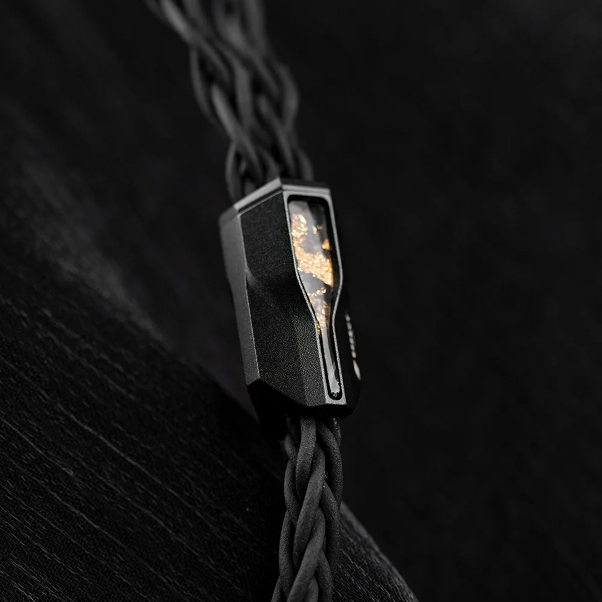 DIONYSUS carries an all-black cable sleeve—once reserved for limited-run creations, now made permanent by popular demand. The hardware retains its forged carbon fiber and is hand-finished with shimmering gold flakes, giving each piece a unique identity. Modern, sleek, and undeniably bold, it mirrors the cable’s intoxicating sound.