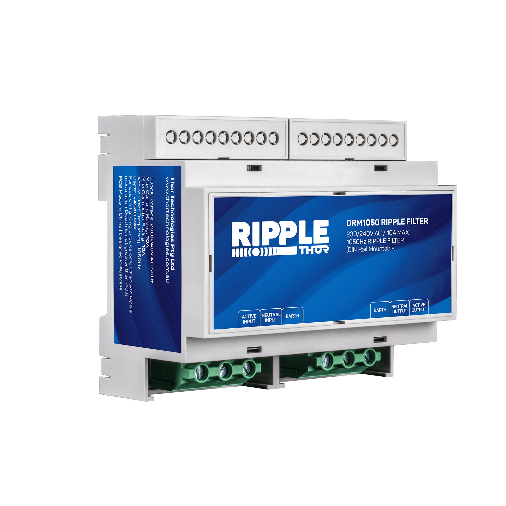 The DRM1050 is a DIN Rail Mount, 10A 230/240V Filter custom designed to specifically reduce or cancel the effects of the 1050Hz ripple frequency.